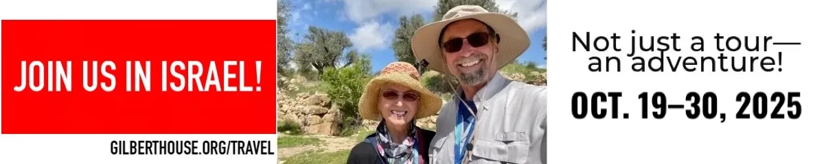 JOIN US IN ISRAEL! Our next tour of Israel is October 19–30, 2025. For more information and to reserve your place, log on to GilbertHouse.org/travel.